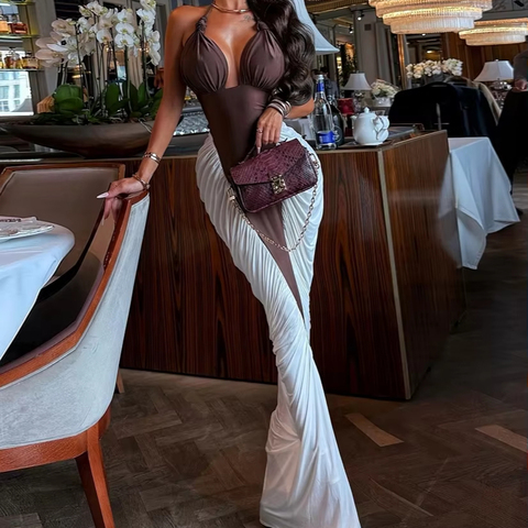 High-End Socialite Vibe Maxi-Jurk Voor Dames Sexy Bodycon-Stijl Met Geroosterde Details, Flatterende Casual Stijl