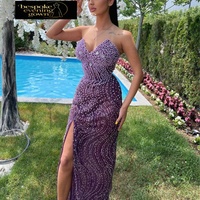 Fabrikant Europese Amerikaanse Sexy Strapless Paarse Split Asymmetrische Vloer-Lengte Snelle Droge Schede Jurk Elegante Avondjurk