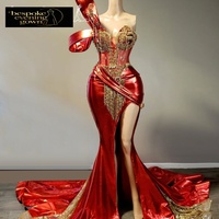 Fabrikant Rood Satijnen Zeemeermin Split Achteraan Op De Grond Lengte Spaghettiband Imperium Liet Vallen Formele Casual Jaarlijkse Diner Verjaardag