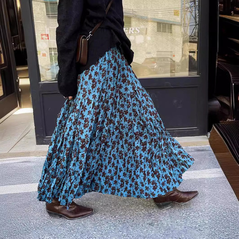 Luna Imcome Nieuw Model Zomer Chiffon Gebloemde Midi Rok Franse Stijl Geplooid A-Lijn Ontwerp Flowy Afslanken Casual Stijl Voor Plus