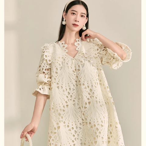 Abito Casual in pizzo ricamato francese con tessuto pesante con Design scavato