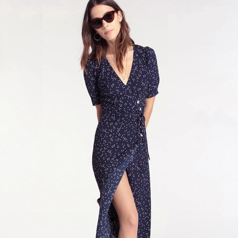 Abito avvolgente floreale retrò francese per la primavera e l'estate con collo a V abito da tè intrecciato uno